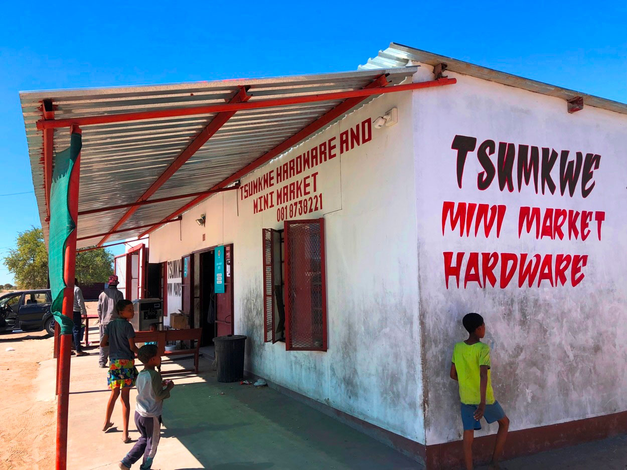 ツムクェには店らしい店が4軒ほどある。その中でもこの「ミニスーパー」は最もモノが多い。店周囲は人が集まる場ともなっている © 岡部一明